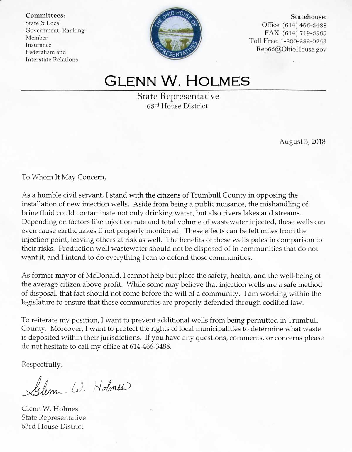 many members. I am also a concerned citizen of Ohio and I am deeply opposed to